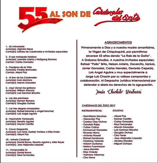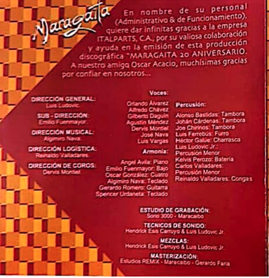 Discografía Colaboraciones MusicalesEstas son algunas produciones, proyectos y agrupaciones musicales con las que he colaborado Tren Gaitero 2012 Pianos | Teclados | Arreglista Ver creditos Maragaita 2007 Pianos | Teclados | Arreglista Ver creditos Maragaita 2006 Pianos | Teclados | Arreglista Ver créditos Maragaita 2005 Pianos | Teclados | Arreglista Ver créditos Tren Gaitero 2002 Pianos | Teclados | Arreglista Ver créditos Estrellas del 2000 año 2013 Pianos | Teclados | Arreglista Ver créditos Cardenales del Exito 2017 Compositor tema aniversario Ver créditos Tren Gaitero 2000 Pianos | Teclados | Arreglista Ver créditos Maragaita 2004 Pianos | Teclados | Arreglista Ver créditos Logistica Gaitera Pianos | Teclados | Arreglista Ver créditos Audiovisuales La pasión de Algimiro por la música es contagiosa. Su trabajo ha transformado mis ideas en verdaderas obras de arte. María López ¡Conéctate Conmigo!Si te apasiona la música y buscas colaboración o producción, no dudes en ponerte en contacto para dar vida a tus ideas. Contáctame